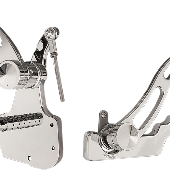 Caracteristicas: CNC-machined from 6061 T-6 aluminum 3/4" mounting plates for superior strength Feature sealed bearings on the pivot points for smooth operation and no maintenance Assembled with chrome hardware, kit comes ready to install Used with existing stock master cylinder Includes foot and toe pegs, mounting hardware and instructions Made in the U.S.A. When installing extended forward controls, check fender clearance before operating.