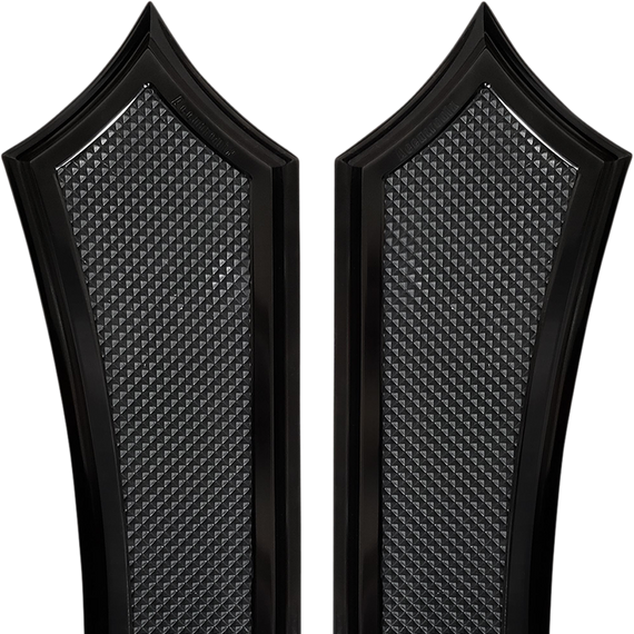 Caracteristicas: Machined from 6061 T-6 billet aluminum Replace stock H-D® boards; mount like stock with stock hardware Driver floorboards are extended 2-1/2" in the front and rear and are 3/4" wider than stock floorboards Passenger floorboards are extended 1-9/16" longer in the front and 1-9/16" longer in the rear Feature multi-directional slip-resistant black pyramid-top rubber inserts Made in the U.S.A. Models w/ passenger footpegs will require the use of OEM accessory floorboard mounts.