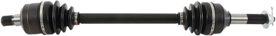 Caracteristicas: Axles are 20% stronger than OEM, 50% stronger than competing aftermarket axles and last 12 times longer than competing axles Axles feature eight precision ball bearings with cage and race sizes that are up to 35% larger for greatly increased CV joint strength Manufactured in facilities that are certified and meet the ISO 9001 quality manufacturing standard Designed with a larger-than-stock chromoly axle shaft and low-profile allow clamps