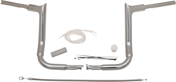 Caracteristicas: Adjustable 1-½” collar next to handlebar controls for custom look Revolutionary bolt-together two-piece handlebar design that takes up half the shelf space, is easy to ship and even faster to install CNC mandrel-bent from 1-1/2" diameter x .095" wall heavy tube EZ install means no more need to fight internal wiring; install handlebar wiring in minutes Billet machined top with a large internal machined radius allows for EZ pulling of wiring (non-welded top corner) Install kits include everything needed to install the handlebars in half the time of other kits due to our design that only extends the existing clutch cable/ clutch line and brake lines Handlebars are knurled and notched for TBW applications Made in the U.S.A. Accepts OEM heated grips Patent No. 10,946,926