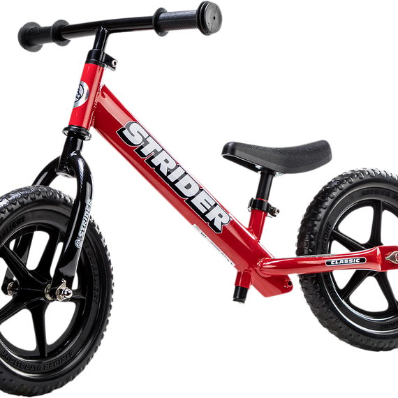 Caracteristicas: Entry-level, budget-friendly genuine Strider Balance Bike With no pedals or gears, it allows children to develop the balance, confidence, and grit it takes to tackle riding and face the world head-on The lightweight, steel frame is light enough for a toddler to handle yet durable enough to withstand their abuse The flat-free foam rubber tires can withstand toddler havoc, and you’ll never need to fix a flat Low seat height (11" minimum, up to 16") so even the tiniest of toddlers can ride comfortably Built-in footrest lets feet rest while your child perfects their balance The included learn-to-ride guide gives step-by-step advice to help your child go from baby steps to barreling through the neighborhood All-weather plastic mini-seat stays intact through rain, sleet, and shine Ultralight molded wheels with maintenance-free sealed cartridge bearings provide a quality wheelset with very little maintenance for you Classic model features all-weather plastic seat, standard handlebar with grips, & standard seatpost For riders with 12"-17" inseam, ages 18 Months to 3 Years, or 18 Months to 5 Years with XL Seatpost (not included) Handlebar height: 18"-22", Seat Height: 11"-16" Max. Rider Weight: 60 lbs. Assembled weight: 6.5 lbs. No-Tool assembly U.S. Patented design