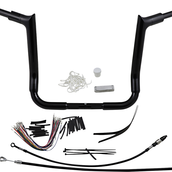 Caracteristicas: Adjustable 1-½” collar next to handlebar controls for custom look Revolutionary bolt-together two-piece handlebar design that takes up half the shelf space, is easy to ship and even faster to install CNC mandrel-bent from 1-1/2" diameter x .095" wall heavy tube EZ install means no more need to fight internal wiring; install handlebar wiring in minutes Billet machined top with a large internal machined radius allows for EZ pulling of wiring (non-welded top corner) Install kits include everything needed to install the handlebars in half the time of other kits due to our design that only extends the existing clutch cable/ clutch line and brake lines Handlebars are knurled and notched for TBW applications Made in the U.S.A. Accepts OEM heated grips Patent No. 10,946,926