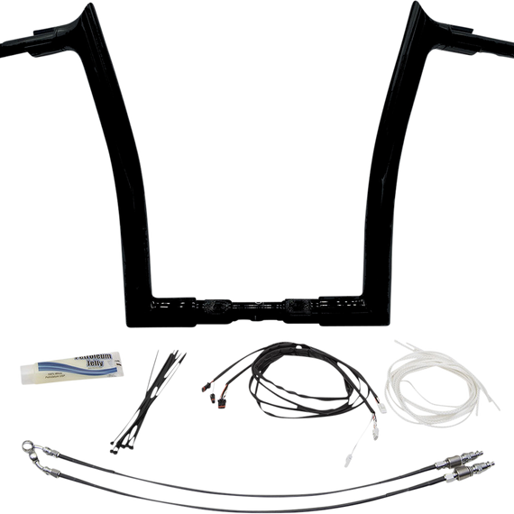 Caracteristicas: Adjustable 1-½” collar next to handlebar controls for custom look Revolutionary bolt-together two-piece handlebar design that takes up half the shelf space, is easy to ship and even faster to install CNC mandrel-bent from 1-1/2" diameter x .095" wall heavy tube EZ install means no more need to fight internal wiring; install handlebar wiring in minutes Billet machined top with a large internal machined radius allows for EZ pulling of wiring (non-welded top corner) Install kits include everything needed to install the handlebars in half the time of other kits due to our design that only extends the existing clutch cable/ clutch line and brake lines Handlebars are knurled and notched for TBW applications Made in the U.S.A. Accepts OEM heated grips Patent No. 10,946,926