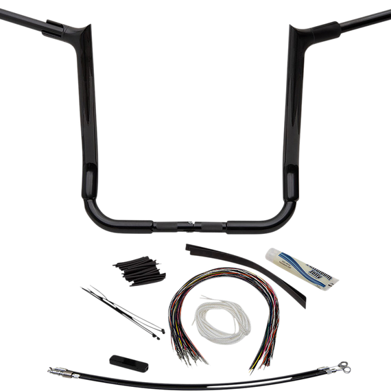 Caracteristicas: Adjustable 1-½” collar next to handlebar controls for custom look Revolutionary bolt-together two-piece handlebar design that takes up half the shelf space, is easy to ship and even faster to install CNC mandrel-bent from 1-1/2" diameter x .095" wall heavy tube EZ install means no more need to fight internal wiring; install handlebar wiring in minutes Billet machined top with a large internal machined radius allows for EZ pulling of wiring (non-welded top corner) Install kits include everything needed to install the handlebars in half the time of other kits due to our design that only extends the existing clutch cable/ clutch line and brake lines Handlebars are knurled and notched for TBW applications Made in the U.S.A. Accepts OEM heated grips Patent No. 10,946,926