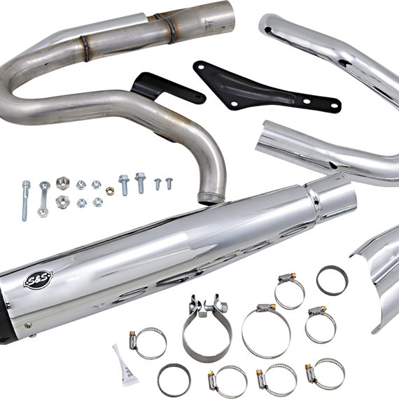 Caracteristicas: Classic 2-1 styling with world famous S&S performance! Full heat shields on both front and rear headers Stepped header construction Computer aided design and precision bending for class-leading ground clearance New multi-faceted endcap design Oxygen sensor ports allow use of wide band or stock O2 sensors Passenger peg bracket included Removable dB reducer included SAE J2825 Sound Level Compliant (with removable insert installed) Made in USA! For closed course competition use only FOR CLOSED COURSE COMPETITION USE ONLY. NOT INTENDED FOR STREET USE. LEGAL IN CALIFORNIA ONLY FOR RACING VEHICLES WHICH MAY NEVER BE USED, OR REGISTERED OR LICENSED FOR USE, UPON A HIGHWAY. NOT LEGAL FOR SALE OR USE NATIONWIDE ON ANY FEDERAL POLLUTION CONTROLLED MOTOR VEHICLE UNDER THE CLEAN AIR ACT