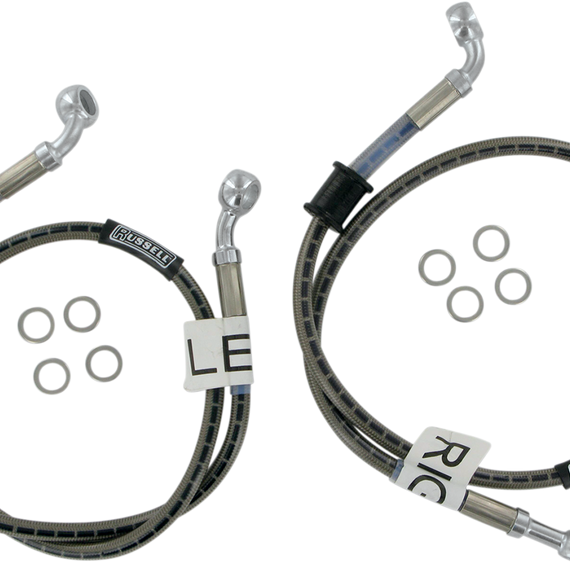 Caracteristicas: Long brake line connects to left caliper while short brake line connects to right caliper Resistance to expansion improves braking power and feel Special two-line configuration direct to master cylinder Lines clear-coated for abrasion protection