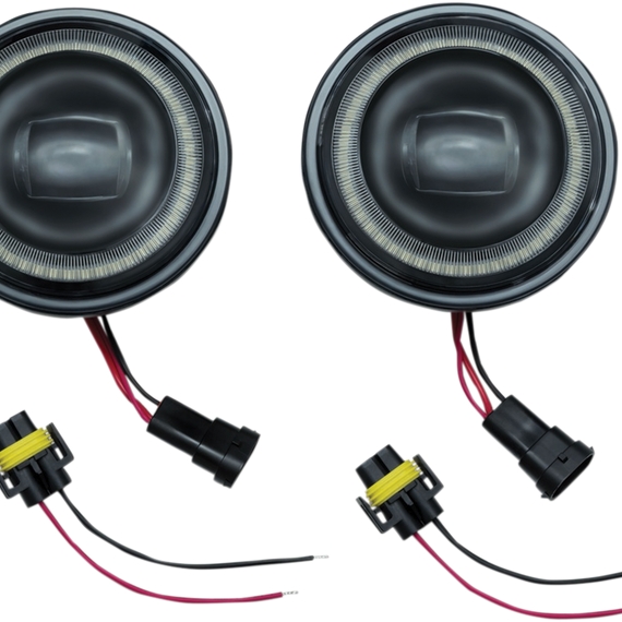 Caracteristicas: Styled to match our top-selling Orbit Vision Headlamp, powerful high-output L.E.D.'s with integrated white halo ring significantly enhance the rider's nighttime field of vision and all-around visibility Raw lumen output: 850 (Passing Beam) Effective lumen output: 560 Current draw: 0.85 amps Color temperature rating: 6,500K Uses standard H11 connector Uniform light distribution and greater temperature stability Durable IP67-rated aluminum housing, with UV-protected and scratch-resistant polycarbonate lenses Exceeds applicable DOT and Transport Canada requirements Pigtail connector allows hardwire installation on custom applications