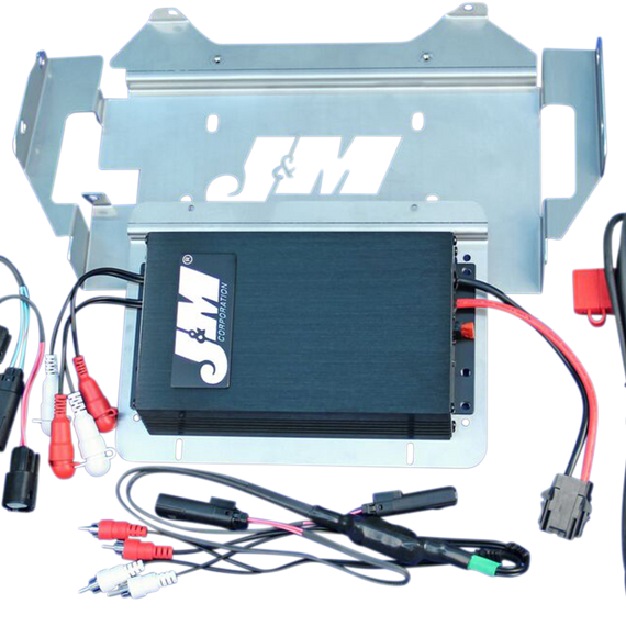 Caracteristicas: 4-channel 400 watt RMS fairing/rear speaker amplifier kit This is a full range class D digital amplifier properly shielded against RF interference into the AM or FM stereo radio bands Amplifier mounts to the custom made stainless steel 2-piece bracket system, to provide solid and secure mounting inside the fairing, in addition to blocking amplifier heat from being transferred to the radio Also included are our custom made heavy-gauge power and ground wires used for the fused battery & frame connections, along with all necessary mounting hardware & complete installation/operation instructions Amplifier itself measures 7 ¼" X 4 ¾" X 1 ¾"