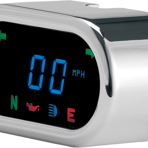 Caracteristicas: High-brightness readout is easy to read, even in direct sunlight Adjustable 0-255 mph/km/h speedometer with odometer and trip meter Features indicators for turn signals, high-beam, neutral, low oil pressure and check engine Sending units and mounting brackets available separately for use with electronic or cable drive systems; handlebar clamp mounts for American IronHorse motorcycles allow gauges to be mounted above or below handlebars and include wiring harness that plugs directly into stock wiring