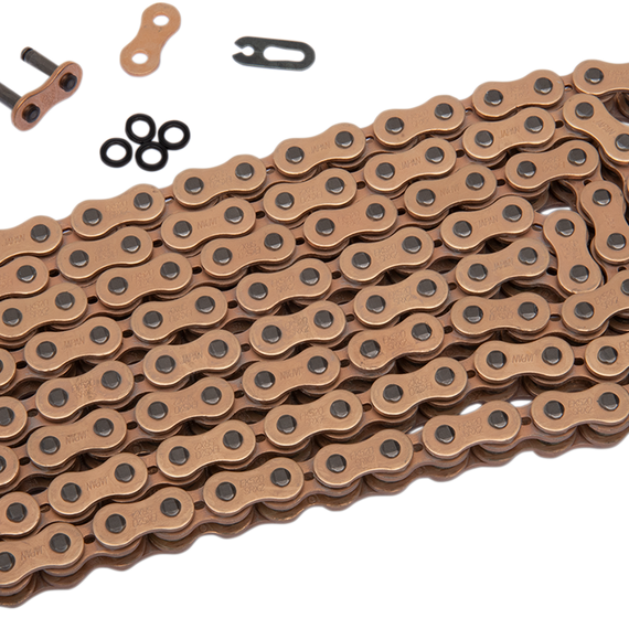 Caracteristicas: For competition and OEM replacement Features lightening holes, reduced friction and Quadra X-Ring design, which increases chain life from 1.5-2 times longer than a standard O-ring chain Comes with clip-type master link