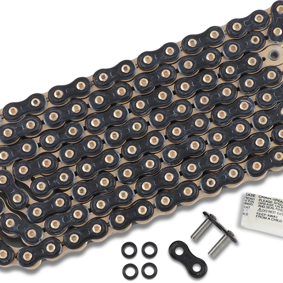 Caracteristicas: Precise Forging process leads to a stiff chain for better acceleration and more efficient engine work Lightening hole allows for a lighter chain without compromising strength while removing mud and dispersing heat more efficiently Improvement in transmission efficiency Special pin with holes in both ends allow the chain to be lightened Edge-cut inner plate reduces friction and allows for smooth engagement with sprocket