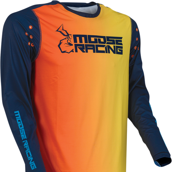 Caracteristicas: Light-weight stretch polyester chassis Laser cut vent holes Custom stretch collar Quick drying fabric Non-restrictive stretch mini cuffs High-quality sublimated graphics