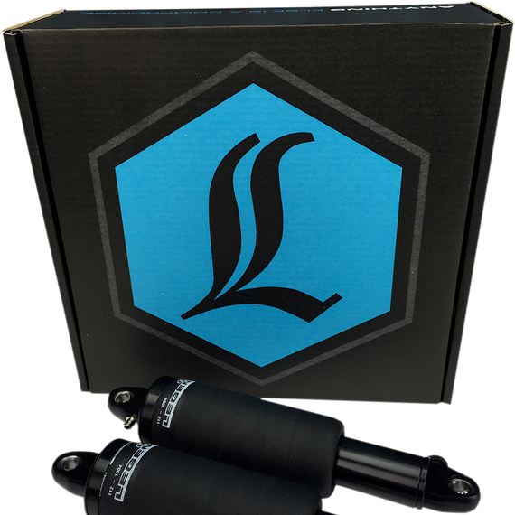 Caracteristicas: Exclusive Aramid Fiber air spring technology provides spring rate adjustability Air springs maximize wheel travel and adjust to any desired ride height Fitment accommodates 12” and 13” needs Spherical mount bearings top and bottom Hard anodized machined aluminum bodies Legend’s low-friction seals eliminate stiction High Flow Piston reacts quickly for improved fluid flow management Deflective Disc Valved Damping self-adjusts to frequency and ensures controlled performance Air compressor included, pre-wired and model-specific mounting NAMZ/Legend complete wire harness installed with three easy Deutsch connectors System includes OEM-looking black handlebar-mounted control for easy “on-the-go” adjustability Six external knob adjustments allow for fine-tuning of rebound damping Provide optimum rebound performance for any given rider weight, personal ride-quality preference or personal riding style Light to heavy riders can fine-tune ride preference Riders with aggressive to casual styles can tune to desired quality or personal preference Made in the U.S.A. Optional chrome handlebar mounted control sold separately (Part Number 0616-0207). Optional fairing mounted matching gauges (Part Number 2212-0484, 2212-0485, 2212-0492, 2212-0493, 2212-0494) also sold separately. Tri-Glide rear lift kit Part Numbers 1313-0120 and 1313-0158 also available (sold separately, see the Drag Specialties FatBook).