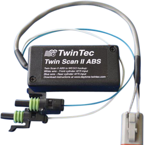 Caracteristicas: Support for new 2006 and later closed loop fuel injection systems Displays throttle position and twist grip sensor data on new 2008-2013 touring models with electronic throttle control Uses laptop PC for display and includes Windows software Reads and clears diagnostic trouble codes from engine control module (ECM), turn signal/security module (TSM/TSSM), speedometer, tach, and anti-skid braking system (ABS) Real time display of engine data on instrument panel type display Includes two analog inputs for air/fuel ratio (AFR). All Twin Scan II ABS units can be upgraded to a Twin Scan II ABS Plus for use as tuning aid
