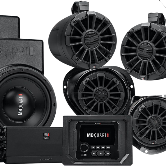 Caracteristicas: AM/FM, Bluetooth source unit 2 front 6.5 inch coaxial two way speakers High impact ABS GENERAL specific left and right speaker panels are an ultra-compact design that takes up minimal space 2 rear 6.5 inch pod two way speakers that feature profile cage mounting hardware mount to the OEM cage Dual voice coil 10 inch subwoofer in a high impact HDPE composite enclosure fits perfectly in the front dash Full Range 5 channel Class D 500 W amplifier Full system harness capable of accommodating source unit, 1 amplifier, which power 4 speakers, and the subwoofer