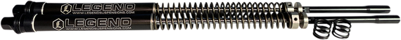 Caracteristicas: Easy installation Includes 2 mono-tube, dual chambered damper cartridges Nitrogen chambers with internal floating pistons Performance spring rate Machined 303 Stainless threaded pre-load adjuster Increased pre-load range allows fine tuning for various riding styles and weights Ride quality is smooth and controlled Improves stability, cornering and traction Eliminates front-end dive during aggressive braking and maneuvering Firm feel for high-speed sweeping turns Eliminates bottoming out on large bumps or potholes Reduces dragging floorboards and pegs Designed for optimum performance with Legend rear suspensions Includes Maxima Racing Oil in cartridge and quart bottle Lifetime Warranty Made by hand in Sturgis, SD USA P65 WARNING: Cancer and Reproductive Harm