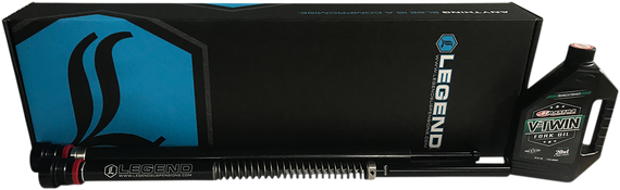 Caracteristicas: Replaces the asymmetrical stock internals with a highperformance twin cartridge set (despite different mounting requirements) Drop-in cartridge that installs easily in a few simple steps Includes two mono-tube, dual-chambered, suspension fluid-filled damper cartridges Includes Maxima Racing Oil in cartridge and quart bottle Nitrogen chamber with internal floating piston Sealed with a high-pressure core Schrader valve specific to nitrogen Damper piston and deflective disc shim stack Performance-rated springs with internal linear spring guide and top-out springs Machined 303 stainless steel threaded pre-load adjuster Micrometer preload adjuster and internal linear spring guide is designed for and unique to the Legend AXEO43 system Increased pre-load range allows fine tuning for various riding styles and weights Internal rebound top-out spring Hydraulic bumper with polyurethane bump stop Ride quality is smooth and controlled Improves stability, cornering and traction Eliminates front-end dive during aggressive braking and maneuvering Firm feel for high-speed sweeping turns Eliminates bottoming out on large bumps or potholes Reduces dragging floorboards and pegs Designed for optimum performance with Legend rear suspension system Lifetime Warranty Made by hand in Sturgis, SD USA