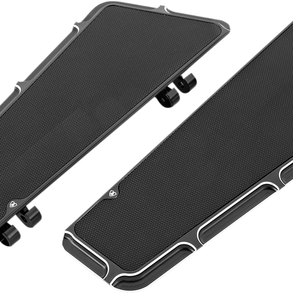 Caracteristicas: The perfect fusion of billet and rubber to provide the best in comfort and style Each Fusion Series floorboard is machined from 6061 T-6 billet aluminum and features rubber inserts for excellent foot traction Three different mounting locations giving 3” of adjustability, allowing you to adjust the floorboard forward and back to obtain your preferred riding position Designed to match the Arlen Ness Fusion line of products Made in the U.S.A. Models w/ passenger footpegs will require the use of OEM accessory floorboard mounts.