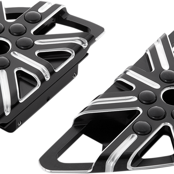 Caracteristicas: Lightweight and see-through designs with machined accent cuts on top and sides of board Machined from forged billet aluminum Driver board features three mounting locations and for up to 3" of adjustability Longer than stock for extra foot room and added comfort Includes all mounting hardware Models w/ passenger footpegs will require the use of OEM accessory floorboard mounts.