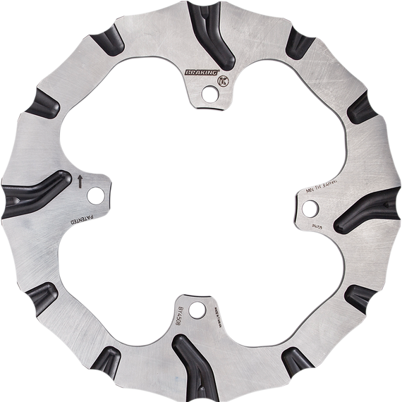 Caracteristicas: The Batfly system improves the rider's feeling and the response during the overall braking event and brings the performance to the top of the category The Batfly system, thanks to the special grooves on the rotor, represents a great evolution in heat dissipation, due to the area that alternatively is not covered by one of the pads Heat generated on one side can be dissipated inside the ventilation channel created between the other side pad and the disc Control of the dilation at high temperatures means better, resistance, compared to a round disc, in case of extreme thermal stress The Batfly system cleans and renews the pad surface at each pass on the grooves, maintaining the friction coefficient of the pads at the maximum level