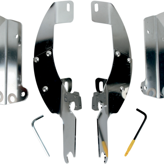 Caracteristicas: Angle Adjustable Model specific no-hassle installation, then on-off without tools A pair of glass-filled nylon latches lock it down until the spring loaded "Trigger-Locks" are intentionally disengaged Made exclusively of electrocoated aluminum and stainless steel, with stainless steel fasteners Anchoring hardware is the same for all windshields and fairings for each bike Made in the U.S.A.