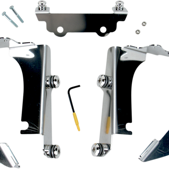 Caracteristicas: Angle Adjustable Model specific no-hassle installation, then on-off without tools A pair of glass-filled nylon latches lock it down until the spring loaded "Trigger-Locks" are intentionally disengaged Made exclusively of electrocoated aluminum and stainless steel, with stainless steel fasteners Anchoring hardware is the same for all windshields and fairings for each bike Made in the U.S.A.