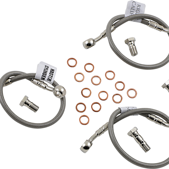 Caracteristicas: Requires less pressure at the lever, allowing the rider to use less force while stopping the bike faster and with better feel Fittings come from the factory pre-positioned but can swivel 180° if necessary to make the installation process easier Include a clear outer coating which protects the bike from scratches and the lines from humidity Complete with all necessary banjo bolts and washers and ready to install