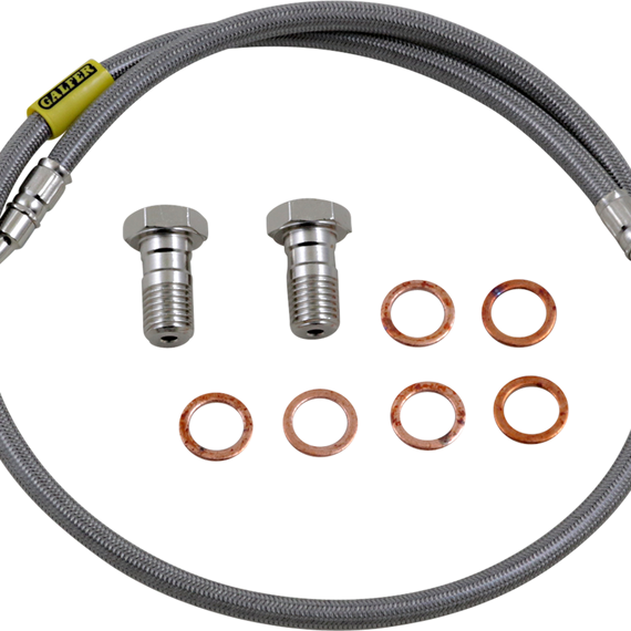 Caracteristicas: Requires less pressure at the lever, allowing the rider to use less force while stopping the bike faster and with better feel Fittings come from the factory pre-positioned but can swivel 180° if necessary to make the installation process easier Include a clear outer coating which protects the bike from scratches and the lines from humidity Complete with all necessary banjo bolts and washers and ready to install