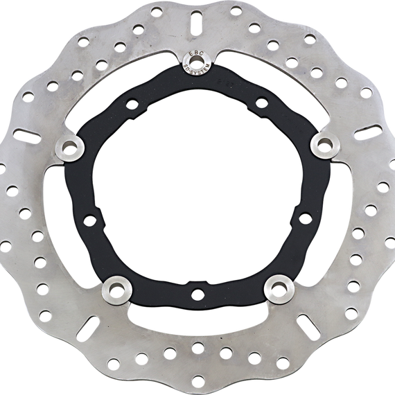 Caracteristicas: Floating brake disc with radical, profiled contour brake rotor ring Brake disc design reduces weight and increases brake effect Brake disc center hubs are forged aluminum Rotor construction uses high-friction billet steel Universal left- or right-side application