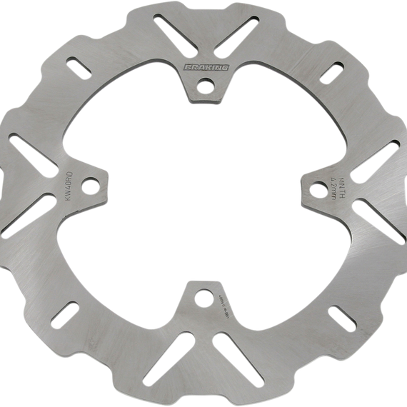 Caracteristicas: Braking's original outer profile design - floating and constructed of only the highest quality stainless steel, capable of expanding and contracting under hot temperatures, without warping 320mm outer diameter - perfect for off-road to supermoto conversion; must use 320mm Caliper Bracket Alloy center for less weight, helps get the bike in and out of turning angles quicker Provide much stronger braking power, but with improved feeling - leading to increased overall performance and handling of the bike A great combination of improved performance and appeal