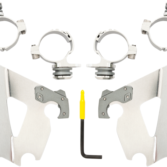 Caracteristicas: Angle Adjustable Model specific no-hassle installation, then on-off without tools. A pair of glass-filled nylon latches lock it down until the spring loaded "Trigger-Locks" are intentionally disengaged. Made exclusively of electrocoated aluminum and stainless steel, with stainless steel fasteners. Anchoring hardware is the same for all windshields and fairings for each bike. Made in the U.S.A. - Made in Memphis!