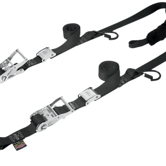 Caracteristicas: Great for single-person loading Quick-adjusting with ratchet and easy release with cam buckles 6,000-lb. test strength; 400-lb. working load per strap Integrated Soft-Tye with plush cover Made in the U.S.A.