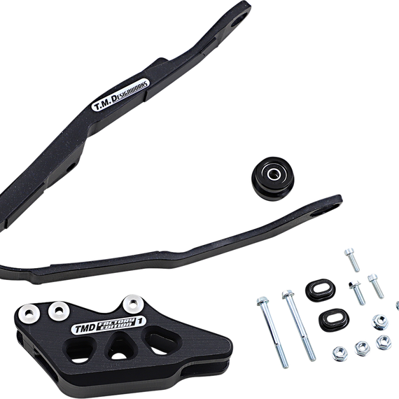 Caracteristicas: The kit includes front slider, lower frame pad & FE #2 rear guide with replaceable wear pad. Noise dampening pad system lowers chain slap noise. A special chain guidance backing plate keeps the chain constantly centered to improve suspension. The lower Powerlip frame pad last longer but more importantly lowers surface drag.