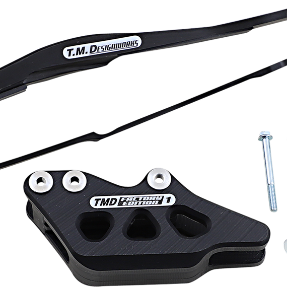 Caracteristicas: The kit includes front slider, lower frame pad & FE #2 rear guide with replaceable wear pad. Noise dampening pad system lowers chain slap noise. A special chain guidance backing plate keeps the chain constantly centered to improve suspension. The lower Powerlip frame pad last longer but more importantly lowers surface drag.