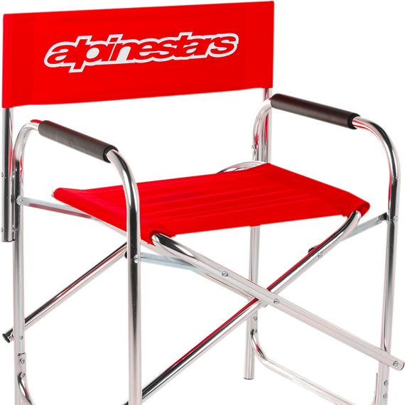 • Director-style chair has a metal frame folds up for convenient transport/storage