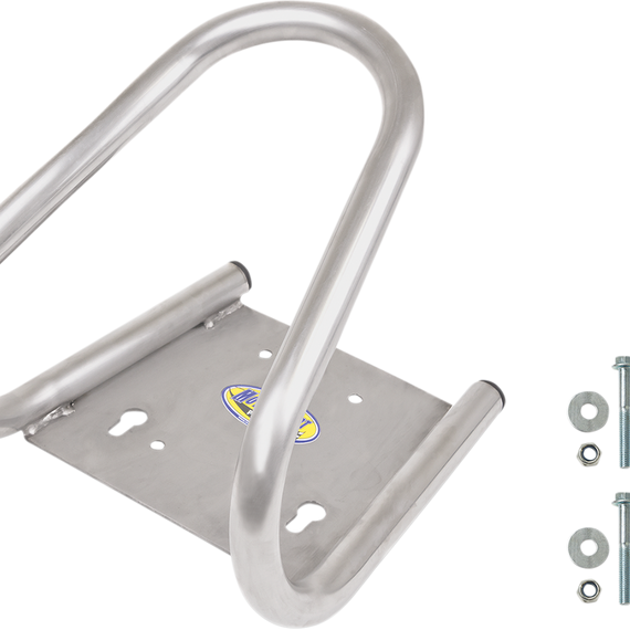 Caracteristicas: Designed to stabilize the front wheel of a cycle during transportation Heavy-duty, wedge-shaped loop makes for a snug fit and allows fitment of tires ranging from 3.5" up to 6.5" wide Permanent mounting hardware included