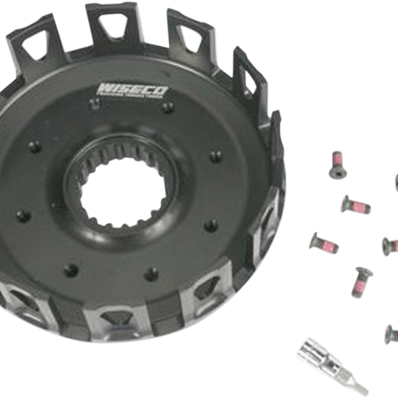 Caracteristicas: Forged from lightweight aerospace-grade aluminum alloy; CNC machining ensures each clutch basket is identical to the next Weight-saving relief cuts on outside of clutch reduce rotational mass, allowing engine to rev quicker Large oiling holes increase lubrication and reduce heat buildup PTFE coating makes for a near-frictionless surface Come with fasteners complete with pre-applied thread locker