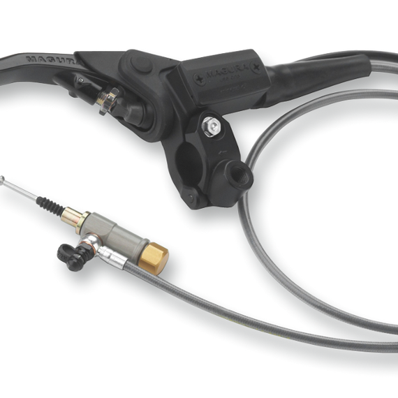 Caracteristicas: This system replaces the clutch lever and cable – with a small lightweight hydraulic system for improved clutch control Up to 20% less clutch pull No maintenance and self-adjusting Smooth hydraulic feel with clear and consistent pressure point Operates on mineral oil which doesn't draw moisture and won't harm paint or finish Forged break-away lever blade with reach adjust is ready to mount Clutch safety switch included