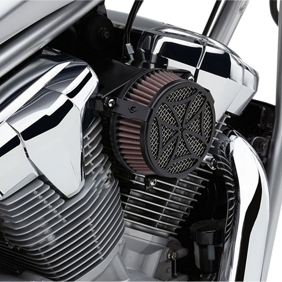 Caracteristicas: The Cobra system consists of a laser-cut, formed steel cover, separate mounting ring, and all the fasteners, seals, backing plate and mounting hardware for easy installation Flow better than stock or competing units, in large part because of its unique internal venturi design of the inner filter High-flow K&N® Air Filter element ensures the maximum air intake and protection Slim profile keeps the unit away from the rider’s leg Formed stainless steel mesh insert Optimize overall performance Made in the U.S.A.