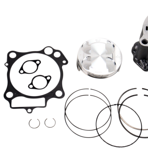 Caracteristicas: Ready-to-install, direct bolt-on cylinders require no re-plating and look virtually identical to the OEM cylinders Cylinder kits include matched Vertex pistons to ensure longevity, performance and reduced engine noise Nickel Silicon Carbide plated for long life Kits come complete with gaskets, cylinder, piston, rings, pin and clips Big bore cylinders do not require machine work Made in the U.S.A.
