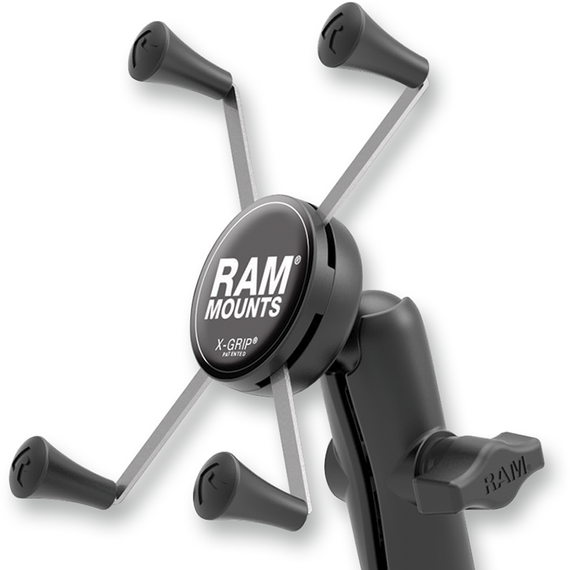 Caracteristicas: Consists of a zinc-coated U-bolt base, double socket arm and universal spring-loaded X-Grip® IV cradle for large phones and phablets Package includes hardware that will accommodate rails from 0.50" to 1.25" in diameter Base comes with black cover caps to place over exposed ends of the U-bolt Included composite rail adapter narrows the rail to a minimum width of 0.5" Mount is designed with a RAM B-sized 1" diameter patented rubber ball and socket system that features adjustment points at both ends of the double socket arm; allows for almost infinite adjustment and perfect viewing angles Spring-loaded X-Grip® IV cradle expands and contracts, allowing for a perfect custom fit of phone or phablet X-Grip® also includes a device tether recommended for outdoor applications Cradle is compatible with handheld devices that will fit the following dimensions: minimum width of 1.75" with a minimum height of 5.5"; maximum width of 4.5" with a minimum height of 3.25"; depth of 0.875" U-Bolt dimensions: 0.50" to 1.25" It is important to verify the dimensions of your handheld device with a case/sleeve/skin when determining the overall size.
