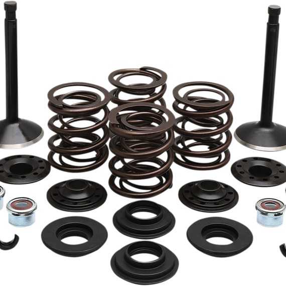 • Kits include KPMI® or equivalent valve spring kit, a full set of Black Diamondâ„¢stainless steel standard size valves, H.T. Steel valve keepers and valve stem seals (where applicable) for engine applications listed
