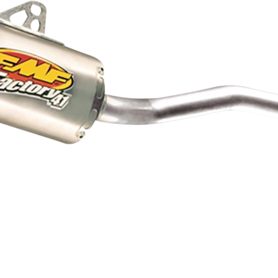 Caracteristicas: Superior power than stock systems Available with titanium and stainless steel headers FMF's Factory Forward Engineering centralizes mass and is less prone to crash damage Innovative rear end cap features simple installation of tuning tip inserts or spark arrestor with the removal of four screws Meet AMA and FIM sound requirements QuietCore 94 dB insert included Spark arrestor included in muffler