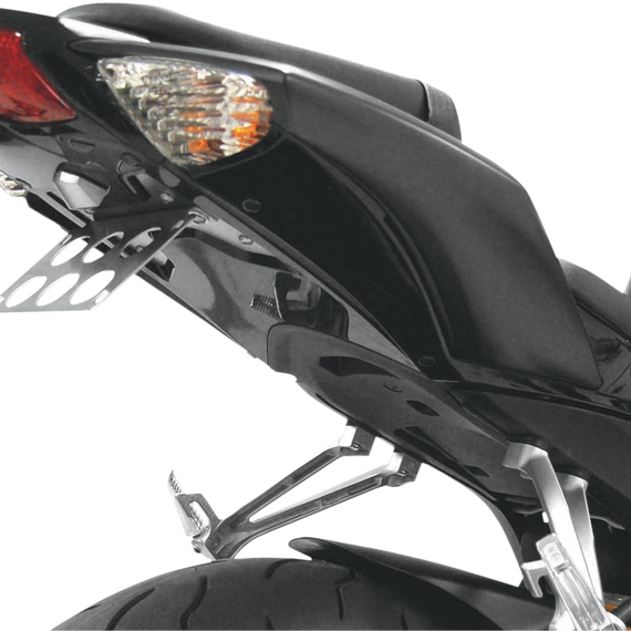 Caracteristicas: Eliminate the rear fender to give your bike a cleaner race-style look Made from CNC laser-cut 304 stainless steel Flush-mount rear LED turn signals and LED license plate light included Hardware and instructions for easy installation Made in the U.S.A.