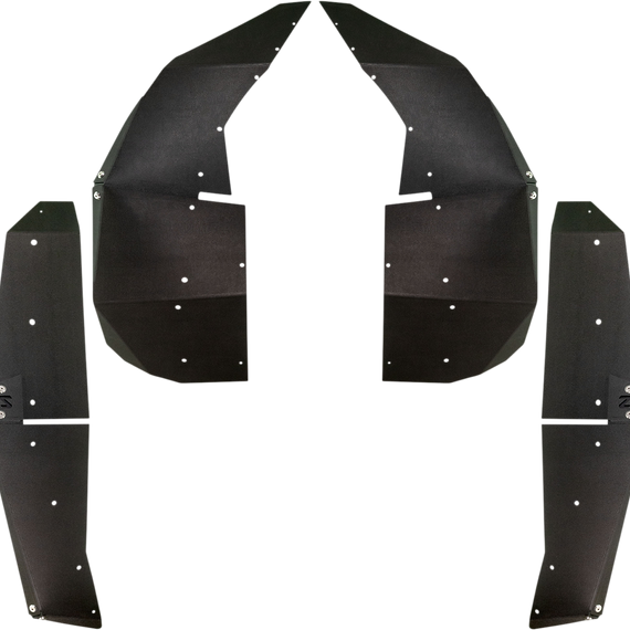 Caracteristicas: Three dimensional form provides rigidity and better styling Structural tabs for added support Anodized aluminum and stainless steel hardware for years of maintenance free performance Textured finish found on the visible (upper) side of the flare Better inner wheel well coverage for additional interior/cabin protection Thicker High Density Polyethylene material to help maintain the shape when collecting mud Fits OEM standard or extended fender flares Accent branding for added styling Two front and two rear flares plus all needed hardware included Made in the U.S.A.