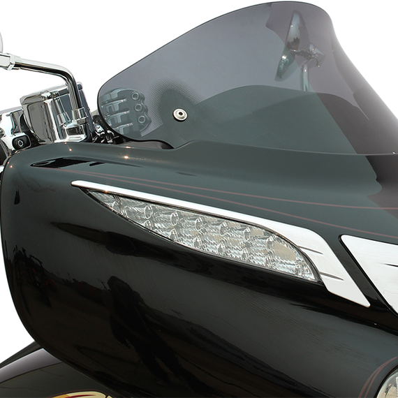 Caracteristicas: Install easily using stock mounting hardware Maintain stock windshield height adjustability Innovative design features “hips” at the outer edge of the shield that re-routes the air to add downforce and aid stability "Flip" at the top sends clean, less turbulent air to rider and passenger Manufactured from dual-side hard-coated polycarbonate material for outstanding impact strength Made in the U.S.A.