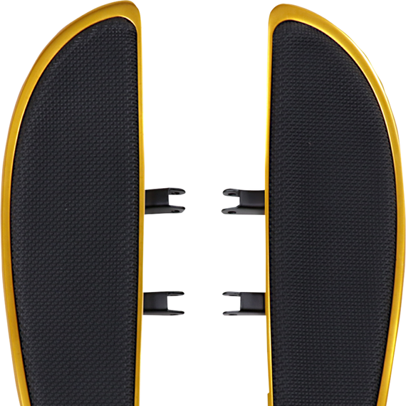 • Bowed floorboards feature machined billet construction, chrome-plated finish with black rubber inserts.