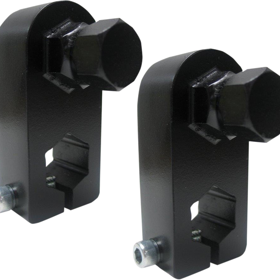 Caracteristicas: Made of billet aluminum with a black finish Raises accessory floorboards 1-1/2" (not included) Can also be rotated to move floorboards slightly forward and raised approximately 3/4” Mounting hardware and instructions included Made in the U.S.A. For use with PART #s 1621-0512, 1621-0513 or OEM #s 50459-06 and 50460-06 only.