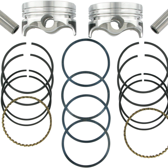 • Each kit contains two pistons, pins, spiral-lock pin clips and Hastings moly rings