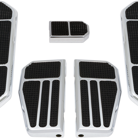 Caracteristicas: Upgrade your bike’s look with a kit that includes floorboards, passenger boards and brake pedal pad Driver floorboards adjust from front to rear for added comfort